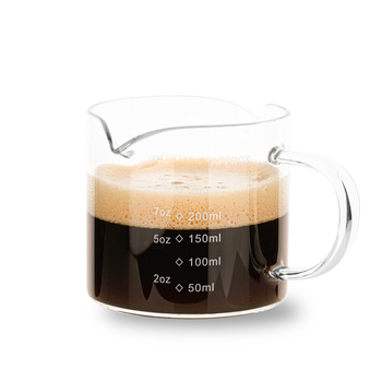 Taza medidora de 250ML/8,5 OZ, vasos de chupito para espresso, taza de café grande con caños dobles con mango de madera, taza de leche triple jarra
